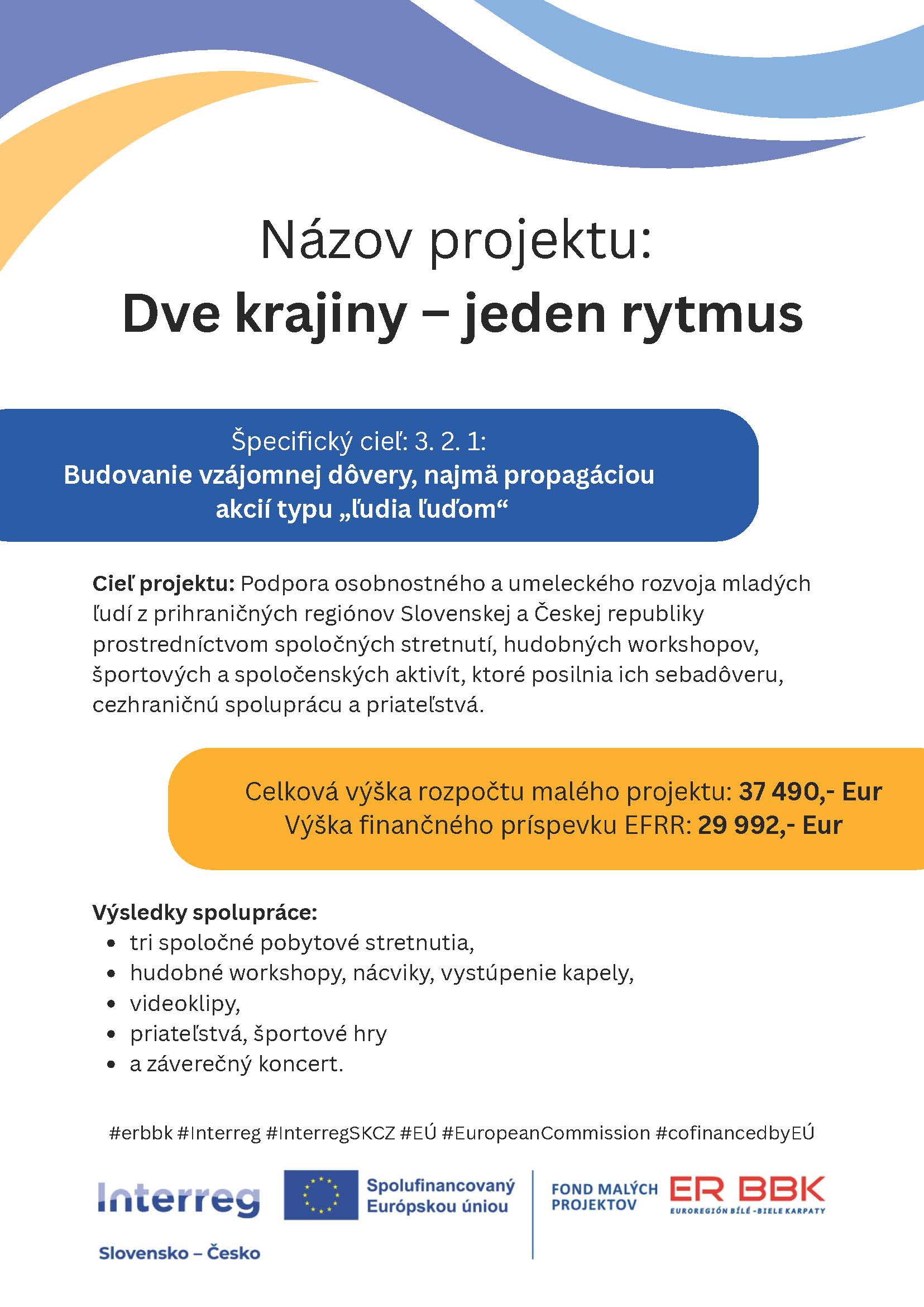 Náš cirkevný zbor sa spolu s partnerským zborom českobratskej cirkvi zo Vsetína v Českej republike zapojil do cezhraničného projektu pre mladých ľudí, ktorý podporil Fond malých projektov, Euroregión Bílé Karpaty spolufinancovaný Európskou úniou z programu cezhraničnej spolupráce Interreg SK-CZ. A úspešne! Celkový rozpočet projektu je vo výške 37 490 €!